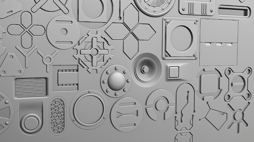 This third pack contains over 100 high-quality Hard Surface alphas/brushes that can be used with ZBrush, Blender, Substance Painter and Mixer.
